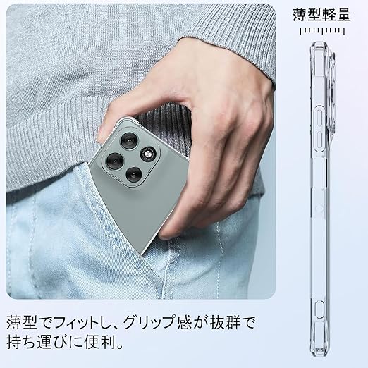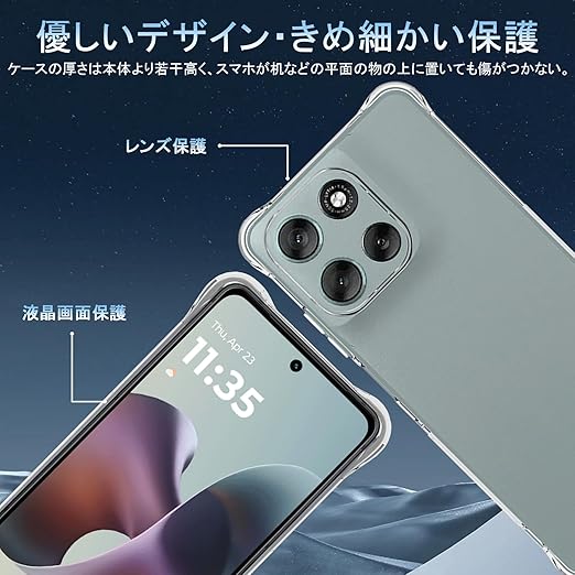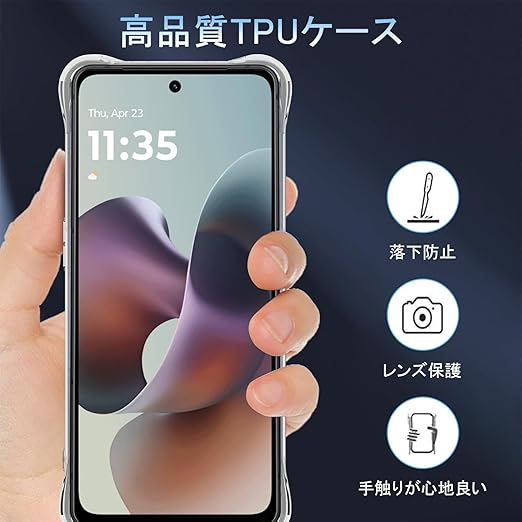 【レンズとスクリーン保護】ケースの厚さは本体より若干高く、motorola g66jが机などの平面の物の上に置いても傷がつかない。スマホが落下した際に液晶画面やレンズに傷が付かないようにする。