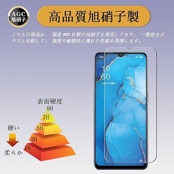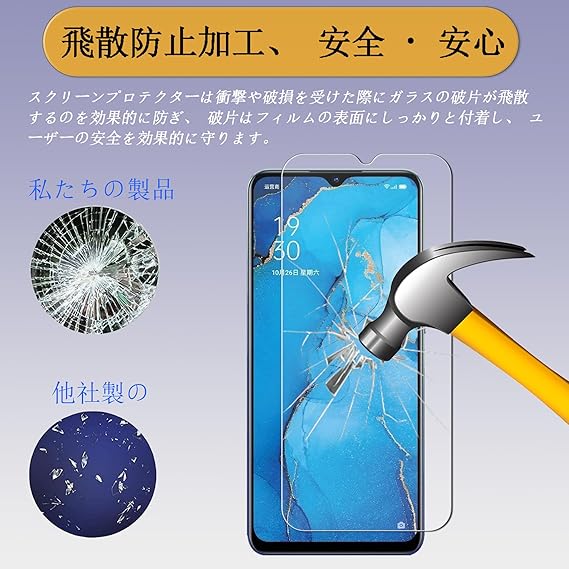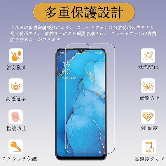 【対応機種】:OPPO Reno3 A 用の ガラスフィルム(2枚入り)