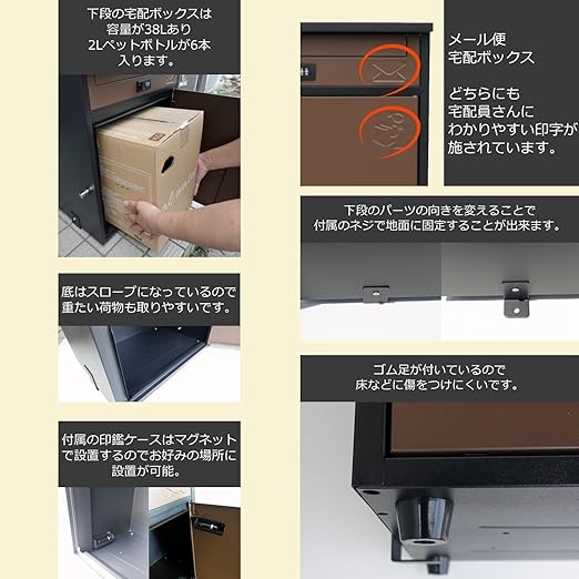 二段構造: 上段は通常の郵便物用、下段は大型の宅配便用として効率的に収納