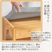 【オシャレ】玄関椅子は天然竹の温かみのある風合いを取り入れ、玄関を和やかな雰囲気になります。座面のクッションは両面同じデザインで、座り心地も良く、取り外し可能