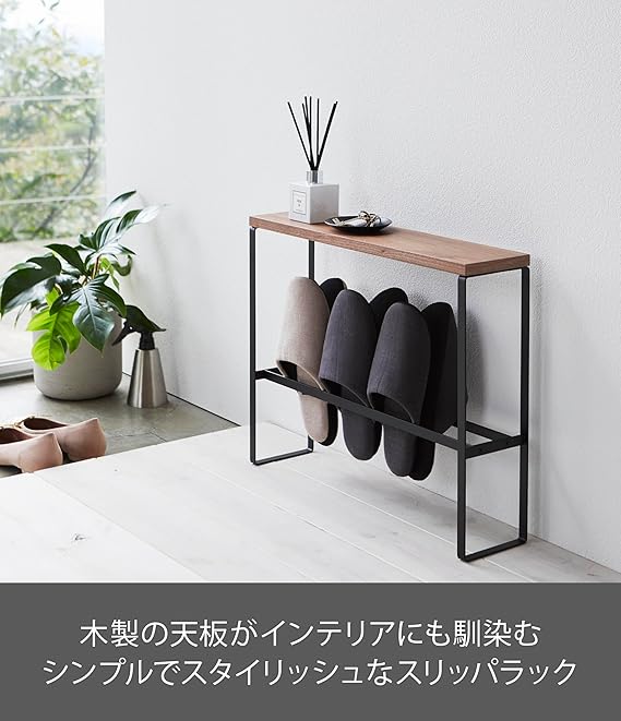 山崎実業(Yamazaki) 天板付き スリッパラック ブラック W50XD12XH41cm タワー tower 小物も置ける 玄関収納 スリッパ収納 5153 a