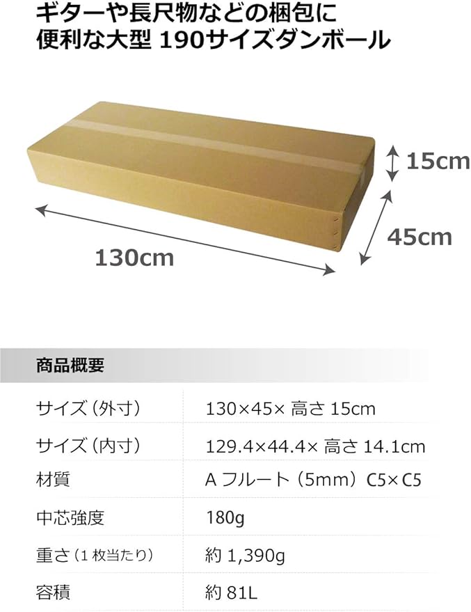 ボックスバンク ギター 着物 大型 ダンボール 5枚セット 【130×45×15cm】 2つ折り配送 段ボール 箱 宅配 190サイズ 引越し FU03-0005-a2 a