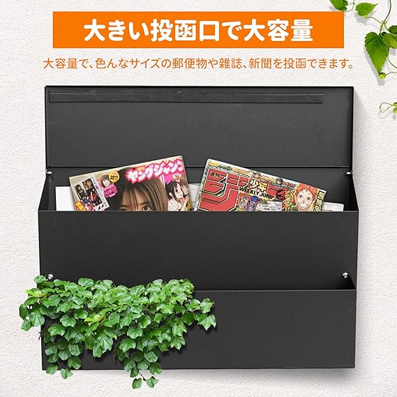 HADBOKSU 郵便ポスト 壁掛け ポスト メールボックス 屋外 防水 防塵 盗難防止 大容量 戸建て用 個人宅 宅配BOX 複数受け取りできる 郵便受け 受け取りボックス 簡単設置 MB068 a