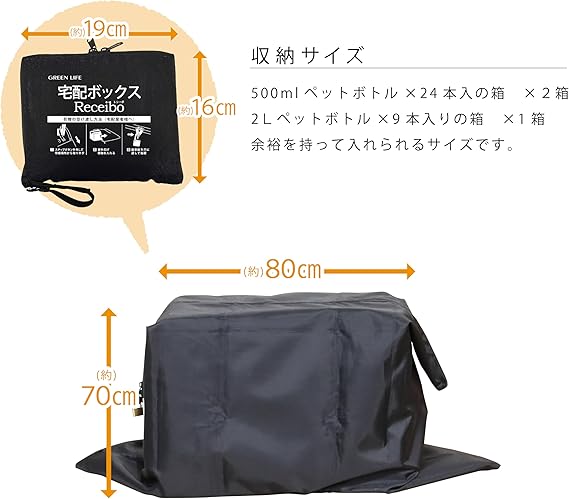 グリーンライフ 宅配ボックス 宅配BOX Receibo(レシーボ) 折り畳み 折りたたみ 折り畳み式 折りたたみ式 置き配 置き配ボックス 簡易宅配ボックス 戸建て用 個人宅 戸建て 屋外 不在受取 防犯対策 盗難防止 南京錠付き ブラック TROC-8070(BK) a