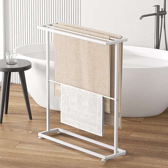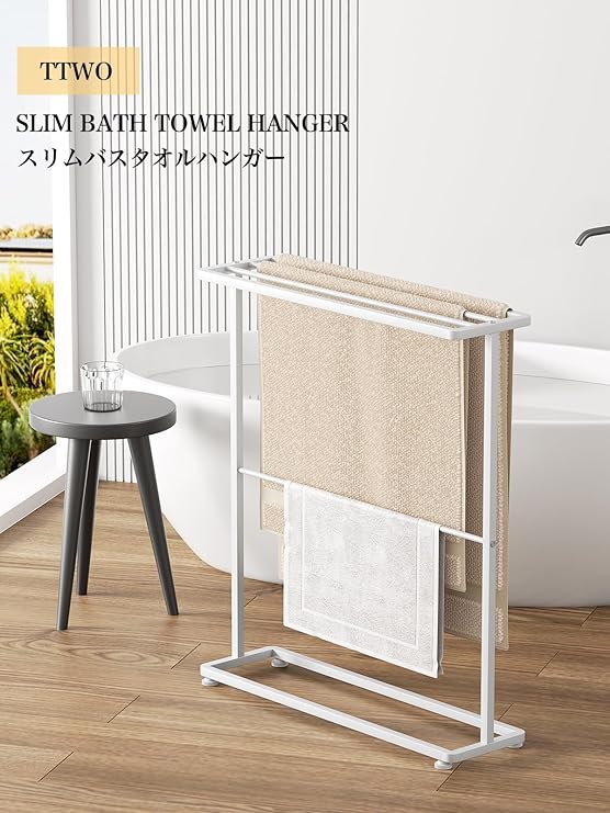 TTWO バスタオル掛け バスタオルハンガー 約W65XD18XH74.5cm 掛けやすい 大判サイズも干せる 薄型 タオルラック 乾きやすい 物干し 大判 隙間収納 洗面所収納 ふきん掛け ランドリーワゴン バスタオルスタンド 置き型 タオル干し ランドリー収納 部屋物干し 室内干し スリム シンプル 北欧 省スペース コンパクト おしゃれ (White) a
