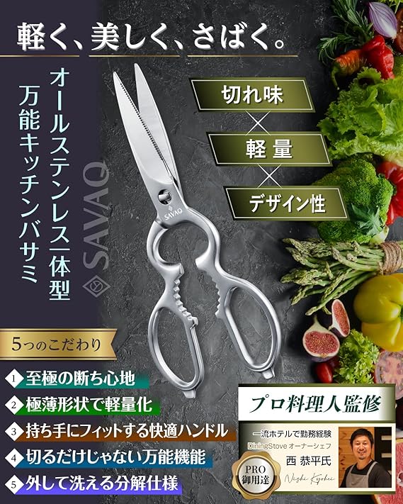【LDKベストバイ受賞】 SAVAQ正規品 手放せない理由がある 進化系キッチンバサミ 分解して洗えるオールステンレス 食洗機対応 a