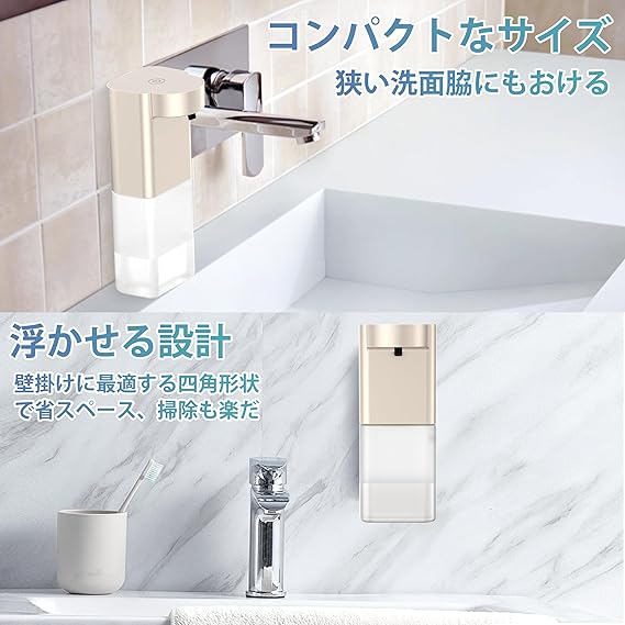 ソープディスペンサー 小型 泡 自動 ハンドソープディスペンサー 吐出量3段階調 壁掛け オートディスペンサー 食器洗剤 キッチン 洗面所などに適用 ディスペンサー 浮かせる ハンドソープ 充電式 IPX5防水 gogorelax (ゴールド) a