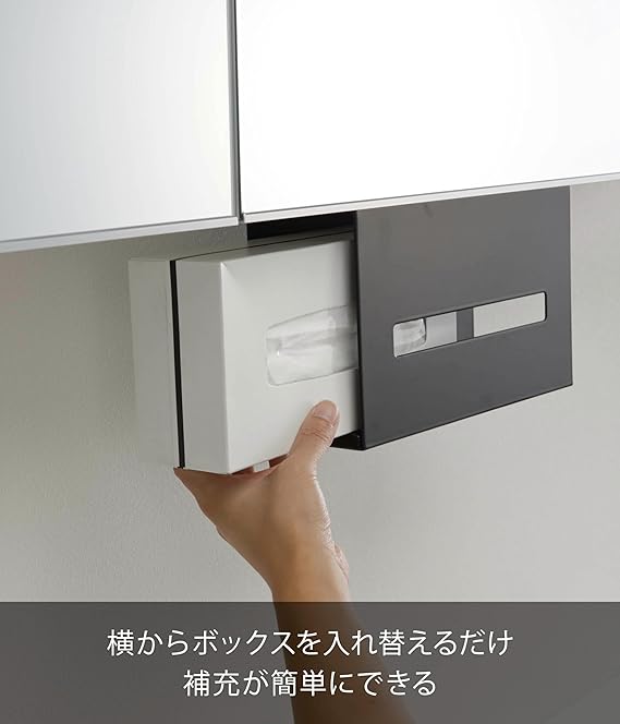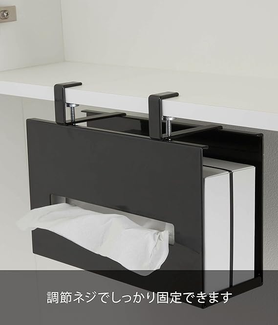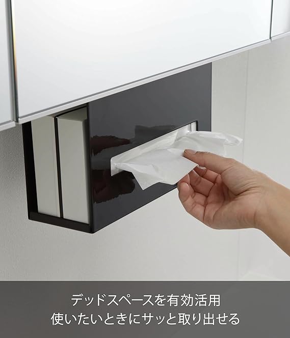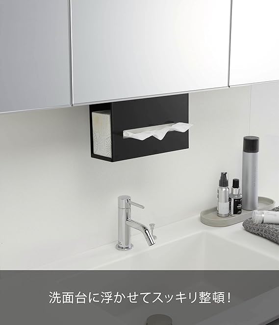 山崎実業(Yamazaki) 洗面戸棚下ペーパーボックスホルダー ブラック 約W25XD8.5XH18.5cm タワー 浮かせて収納 ティッシュケース ティッシュカバー 5011 a