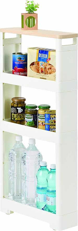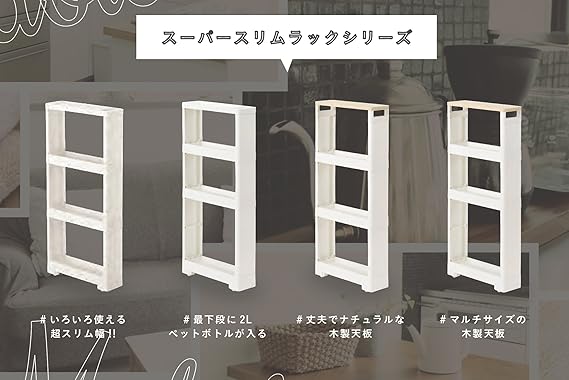 JEJアステージ(JEJ Astage) 隙間収納ワゴン ホワイト 12×40×85cm すきま収納 リセ スーパースリムラック ウッドマルチ4段 コロ付き キッチン ランドリー 洗面所 a