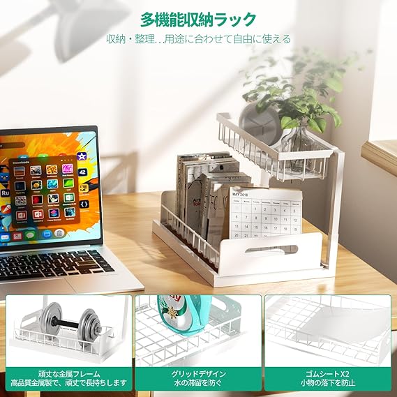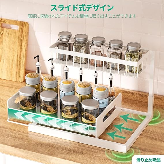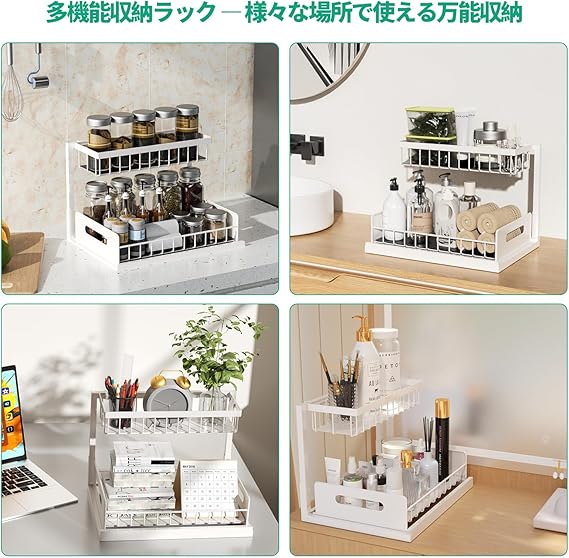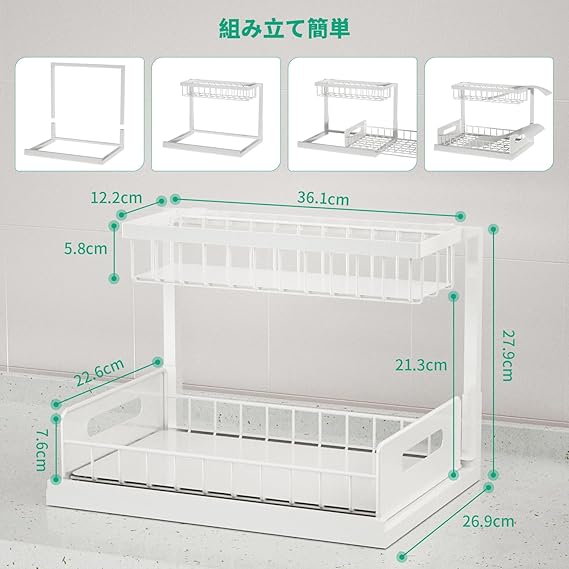 シンク下収納ラック スライド式 キッチン収納 L字型 2段 スライド式 引き出し シンク下 洗面台下 調味料 小物整理 大容量 組立簡単 省スペース キッチン/洗面所/バスルーム (ホワイト, 単品) a