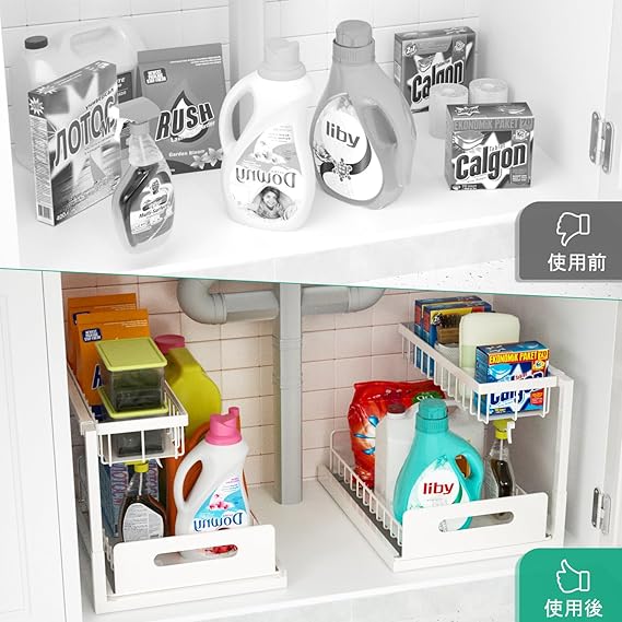 【2段スライド式 シンク下収納】2段引き出し式シンク下収納で、シンク下のスペースを整理しま