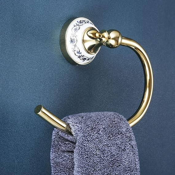 【良いデザイン】このタオルリングは染付の陶磁器の柄というヨーロピアンアンティークのデザインとを採用し、美しく高級感があります。取り付けると家に素晴らしい雰囲気を加えます。隠されたネジのデザイ