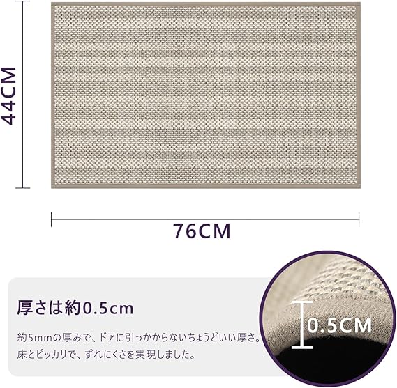 DEXI 玄関マット 室内 泥落とし 吸水 滑り止め 厚み約0.5cm 無地 シンプル エレガント 耐久性 お手入れ簡単 洗える 防カビ 防臭 おしゃれ 44x76cm ベージュ a