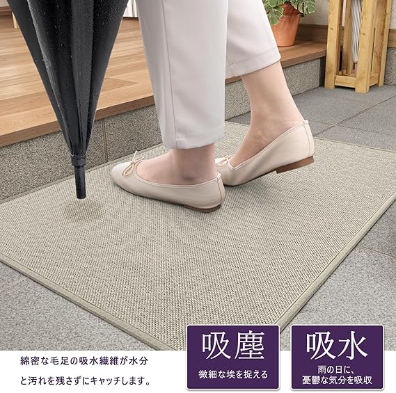 【除塵と吸水性能が目立つ】玄関マット 泥落とし 表面は織り系の設計で、無地ですが、摩擦力性能が揃え、しっかりと靴底の汚れを排除します。高質で吸収性がいいポリエステル生地で加工し、雨水や雪水や泥などの汚れをよく吸収します。しかも、撥水します。床に浸透する悩みは排除します。屋内の乾燥さを確保し、カビと臭も防ぎます。
