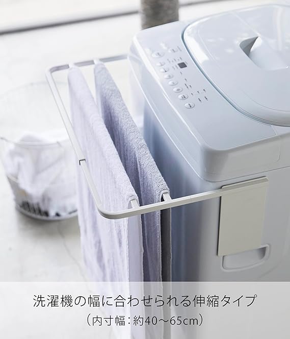 山崎実業(Yamazaki) マグネット伸縮洗濯機バスタオルハンガー ホワイト 約W43XD32XH18cm プレート タオル掛け 置き棚 4875 a