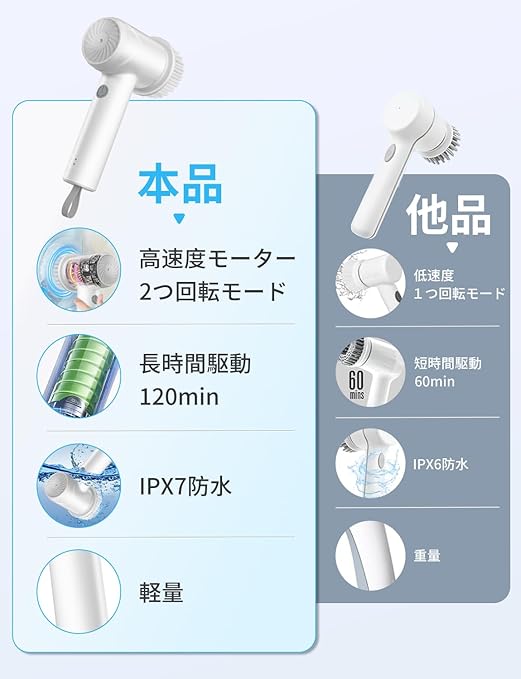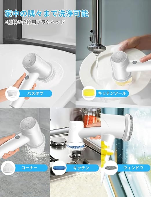 【7in1電動掃除ブラシ】風呂掃除 ブラシは家中まるごと対応!様々な交換可能ブラシで家中のあ