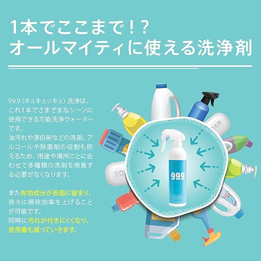【有吉ゼミで紹介】【時短お掃除クリーナー】99.9洗浄スプレー350ml 汚れにスプレーして拭き取るだけ 自宅に1本あると便利 手袋なしで使用可 純日本製の無添加 素材の色落ちや変色しにくい成分値 天然成分100% 油汚れに強く皮脂汚れ テーブル キッチン 床 壁を除菌しながらお掃除 高級ホテルや幼稚園でも使用 汚れを取りながらニオイ菌も除去する万能クリーナー a