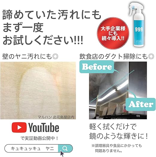 「汚れは取れたけどステンレスが変色した」「アルミ系の汚れには使用できない」こういう問題を解決するのが、“99.9洗浄”です!