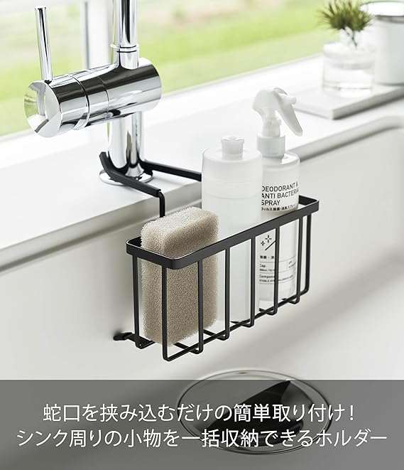 山崎実業(Yamazaki) 蛇口にかける 収納ホルダー ブラック 約W20.3XD18.5XH14cm タワー tower シンク 小物収納 スポンジホルダー 5640 a