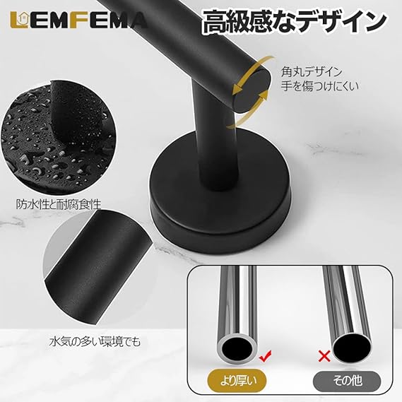 【防錆性】:このタオル壁掛けバー は耐久性に優れたステンレスス鋼製で作られ、丈夫で、優れた耐摩耗性と耐久性があり、長期間使用できます。錆びにくく、色褪せにくく、手触りが非常によいです。