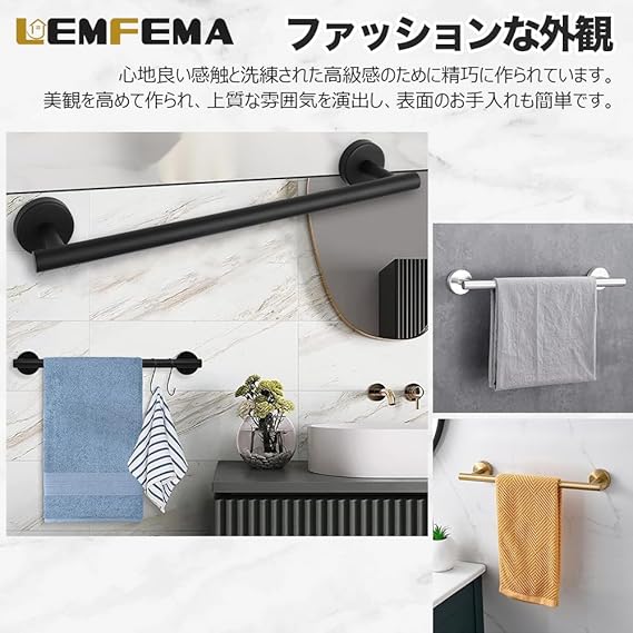 【両用・実用性】:このタオルバーは壁掛け式で、タオルを掛けるだけでなく、ドアハンドルやドア取っ手としても使えます。隠しネジのデザインと美しい外観は、