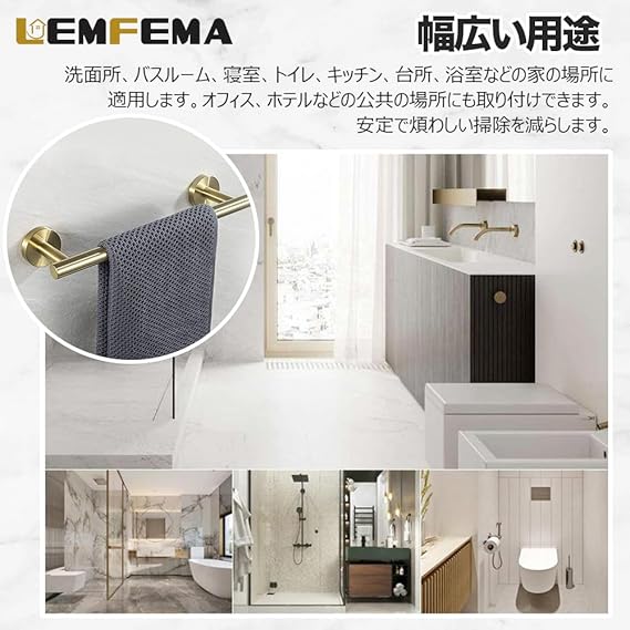 Lemfema タオル掛け タオルバー タオルハンガー 1個 40cm 省スペース ネジとレンチ付き ステンレス 壁掛け タオルホルダー 洗面所 トイレ 浴室 キッチン バスルームアクセサリー つや消し(ゴールド) a
