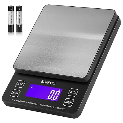 BOMATA(ボマタ) はかり デジタル キッチン 0.1g単位 5kg 全視野 バックライト画面 無隙間 パネル タッチ式 ボタン 地域設定 風袋引き ml ステンレス デジタルスケール ( 軽量 小物 料理 牛乳 ) B606 乾電池式 黒… a