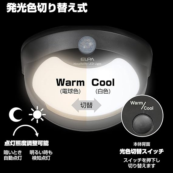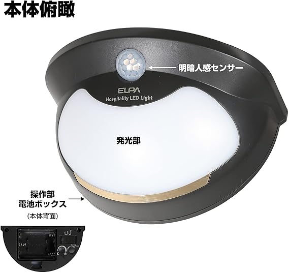 エルパ (ELPA) もてなしライト (扉ひっかけ形/電球色・白色/電池式) 人感センサー/ライト/室外 防沫型 (HLH-2206) a