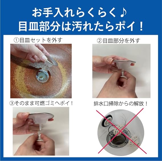 洗面用化粧キャップ使い捨て目皿セット 洗面台 排水口 おしゃれ 簡単お掃除 ステンレス 日本製 スタイリッシュ環境配慮型樹脂 エコ素材 サステナブル 排水口かんたん交換ショップ LSM0001 a