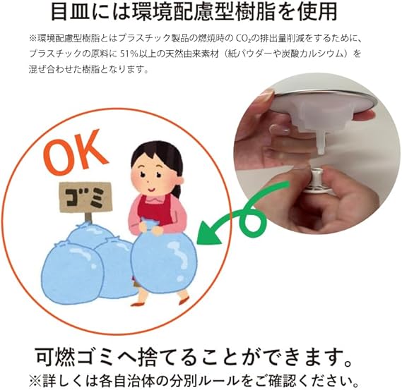 目皿は環境配慮型樹脂使用で溜まったゴミと一緒に可燃ゴミとしても捨てられます。