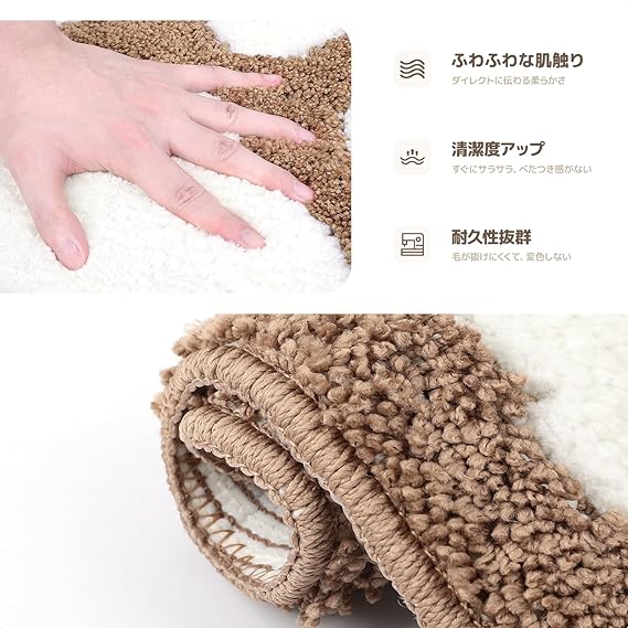 【踏み心地よい】:超極細のマイクロファイバー素材を採用、頬ずりしたくなるようなふわふわな肌触りで、お風呂上がりの足元に嬉しいバスマットです。