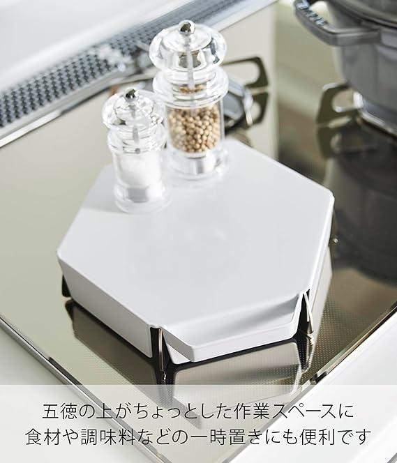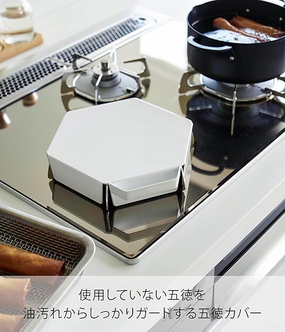 山崎実業(Yamazaki) 立てて置ける 五徳カバー ホワイト W21.8×D21.7×H4cm(ハンドル含む) タワー tower 汚れ防止 油はね防止 1413 a