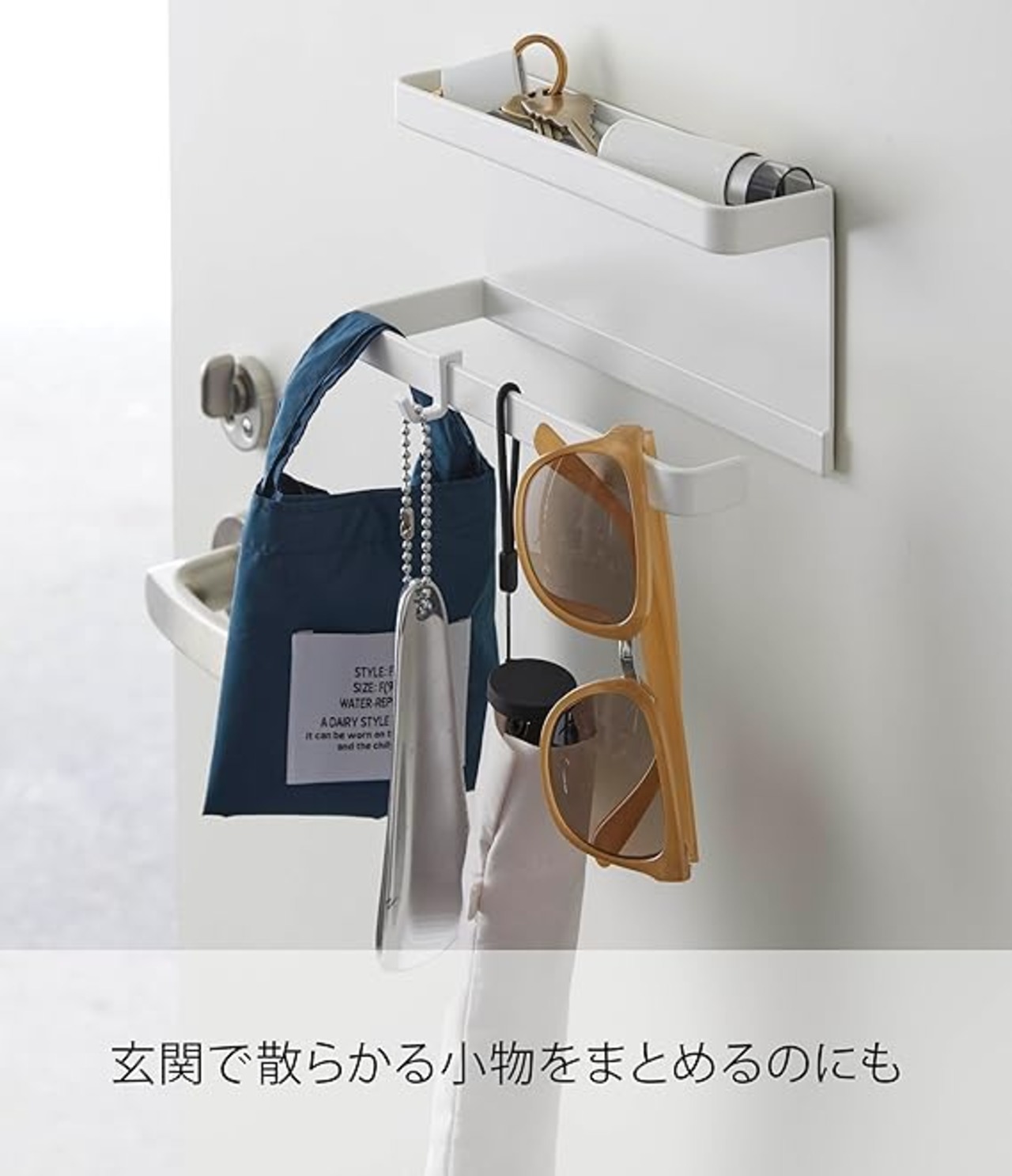 山崎実業(Yamazaki) トレー付きマグネット アンブレラホルダー ホワイト 約W20XD7XH9.5cm スマート 傘立て 玄関扉収納 フック付き 5041 a
