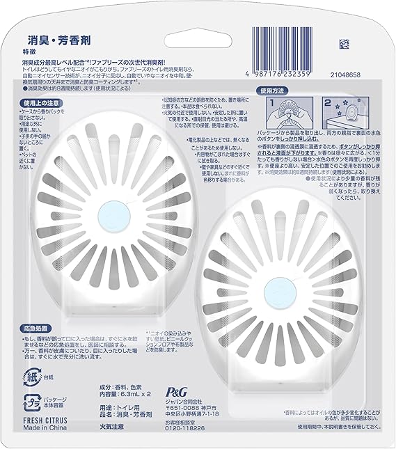 ファブリーズ 【まとめ買い】 W消臭 トイレ用消臭剤 消臭成分最高レベル フレッシュ・シトラス 2個×2 a