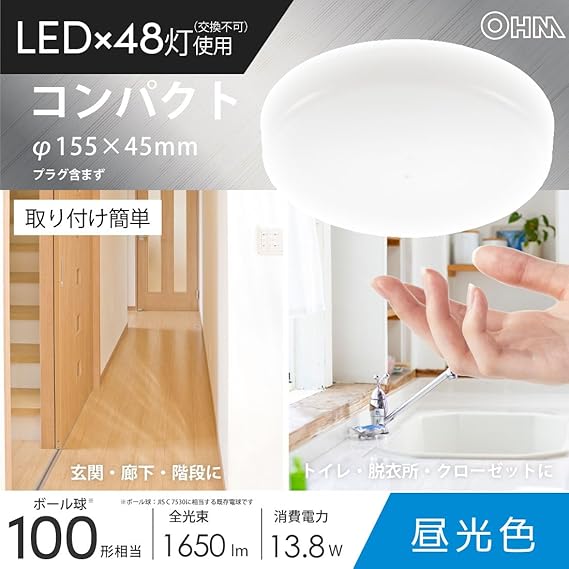 オーム電機 シーリングライト LED 小型 100形 1650ルーメン 昼光色 ミニシーリング 玄関 トイレ 洗面所 LE-Y13B-WD 06-5063 OHM a