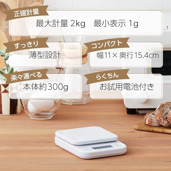 タニタ(Tanita) クッキングスケール 1g単位で2kgまで計れる ホワイト KF-200 WH キッチン はかり 料理 デジタル a