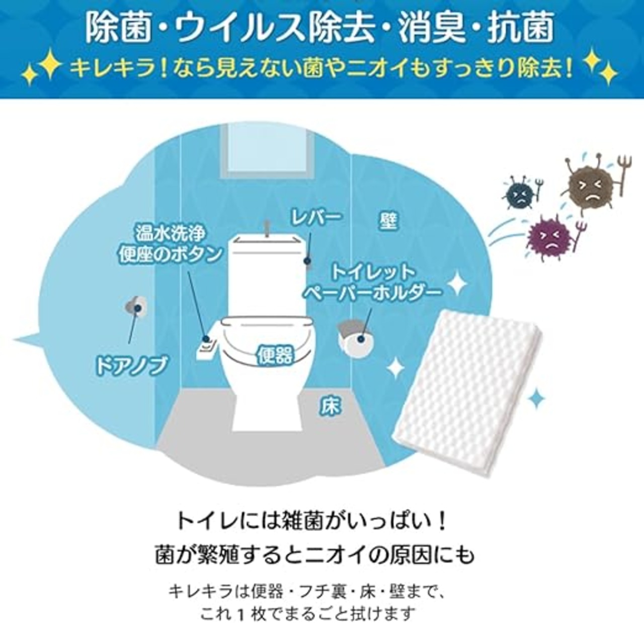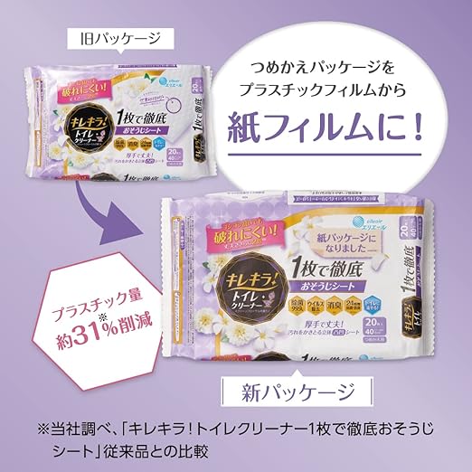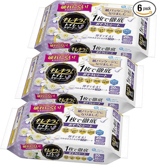 【Amazon.co.jp 限定】エリエール キレキラ ! トイレクリーナー つめかえ用 クリーンフローラルの香り 60枚(20枚×3個) 1枚で徹底おそうじシート 【まとめ買い】 a