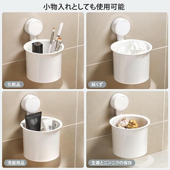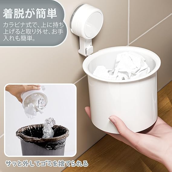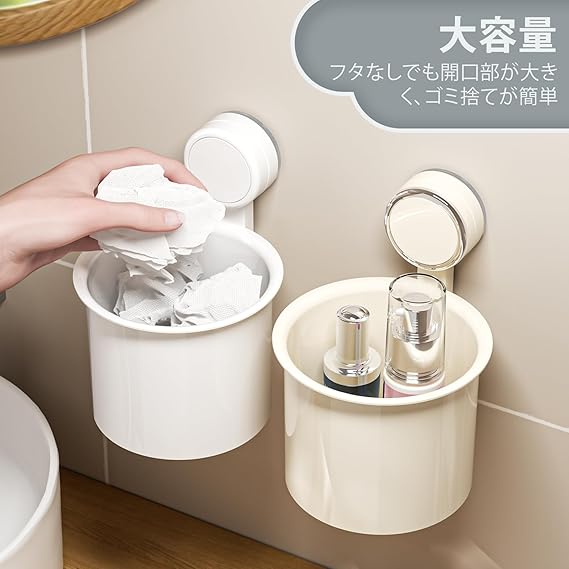 Toski 洗面ゴミ箱 吸盤式 ごみ箱 洗面所 浮かせるゴミ箱 お手入れ簡単 捨てやすい 洗面台 キッチン ゴミ箱 コンパクト 壁掛け 省スペース 小型 くずかご ホワイト a