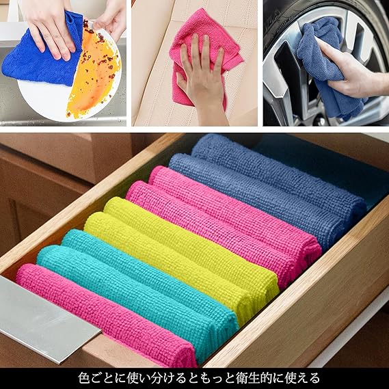 【強力な洗浄力】マイクロファイバークロスは特製マイクロファイバーでできており、細かい隙間の汚れを取り込み、お掃除等にも使えるマイクロファイバークロスです。電子レンジ、お皿、鍋やフライパンのあぶらや汚れを簡単に取り除くことができます。使用後でも素早く乾燥して汚れが残りません。キッチンをきれいな状態に保つ。