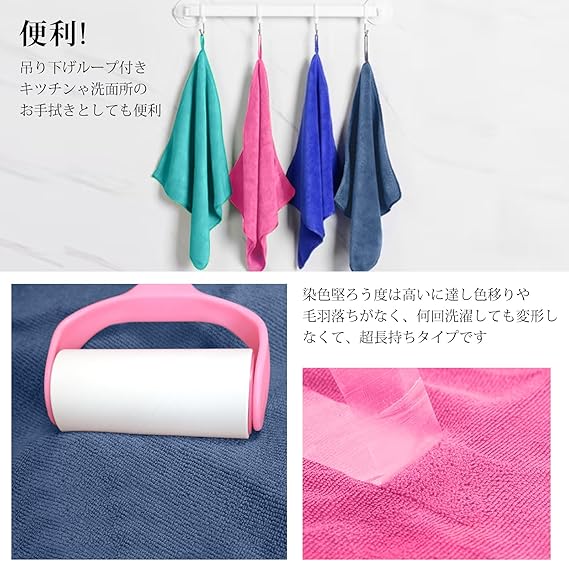 【素材】ポリエステル93% ナイロン7%、サイズ:約31 × 31 cm。手にぴったりのサイズで使いやすく、またマルチカラータオルは色ごとに用途を分けて使うと、さらに衛生的にお使いいただけます。