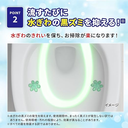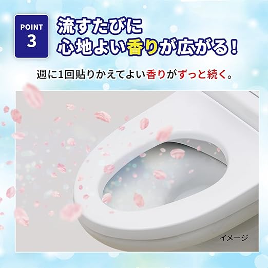 便器表面に貼り付けておくだけで、心地よい香りが広がり、水ぎわのきれいを保ちます。