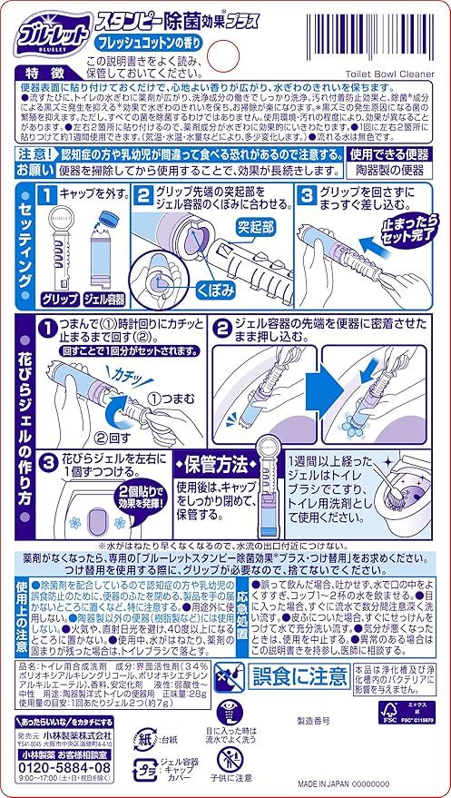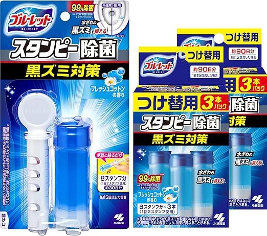ブルーレット 【まとめ買い】スタンピー 除菌効果プラス トイレ 洗浄剤 フレッシュコットン 本体 約30日分 ×1個+詰め替え用 約90日分×2個 貼るタイプ 流すたび除菌 洗浄 a
