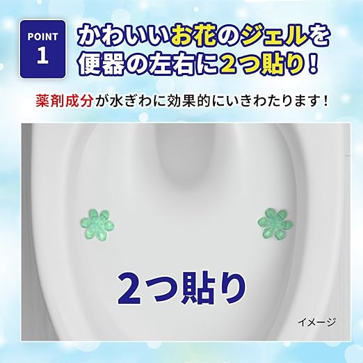 便器表面に貼り付けておくだけで、心地よい香りが広がり、水ぎわのきれいを保ちます。