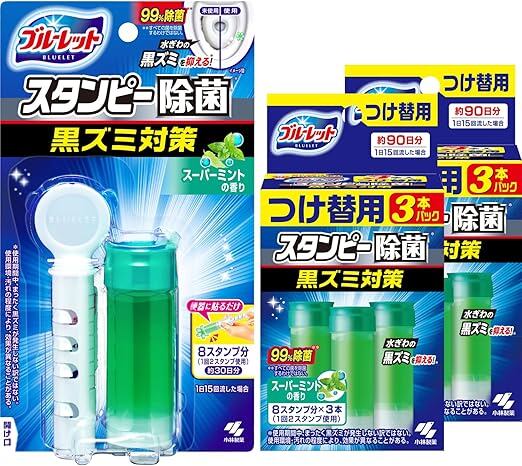ブルーレット 【まとめ買い】スタンピー 除菌効果プラス トイレ 洗浄剤 スーパーミント 本体 約30日分 ×1個+詰め替え用 約90日分×2個 貼るタイプ 流すたび除菌 洗浄 a
