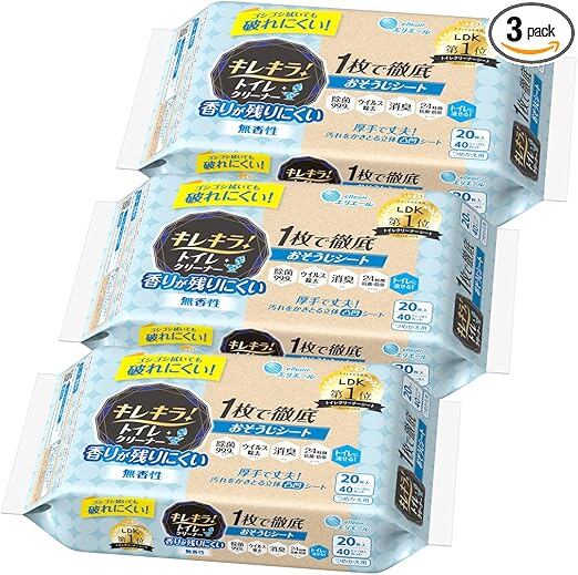 エリエール キレキラ!トイレクリーナー つめかえ用 60枚(20枚入り×3パック) 香りが残りにくい 無香性 1枚で徹底 おそうじシート【まとめ買い】 a