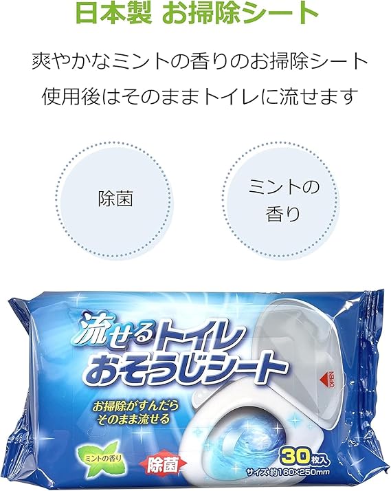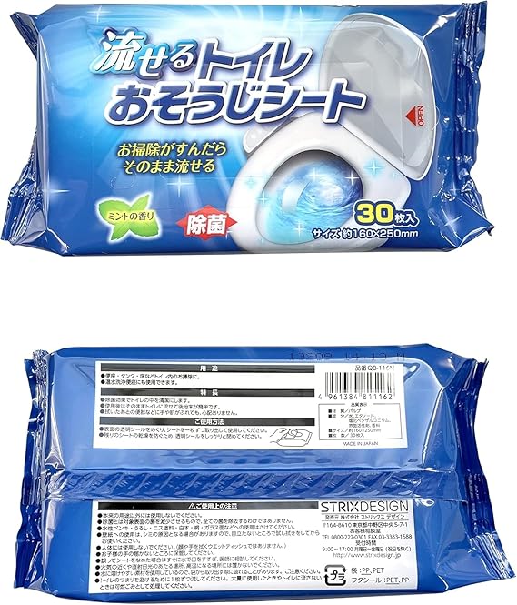 【Amazon.co.jp 限定】ストリックスデザイン 流せる トイレおそうじシート 180枚 (30枚×6セット) 日本製 除菌 さわやかなミントの香り 160×250mm QB-116N a