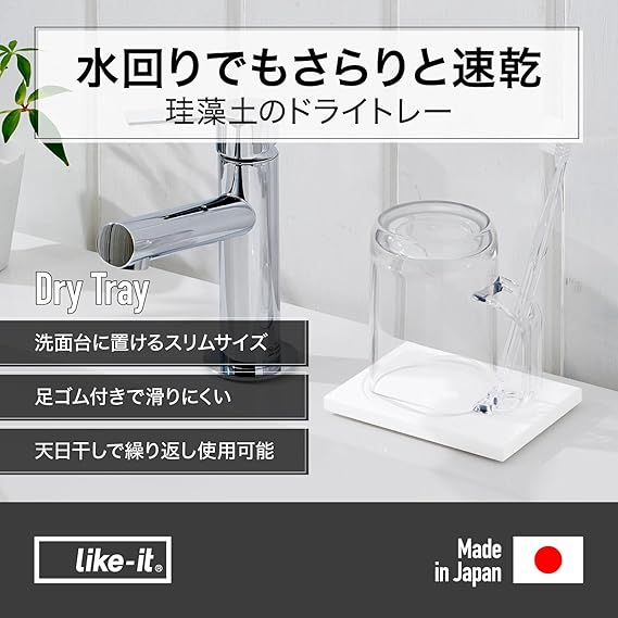 ライクイット (like-it) 歯ブラシ 収納 さらりと乾く 珪藻土 トレイ 約幅11.5x奥8.8x高1.1cm ホワイト a