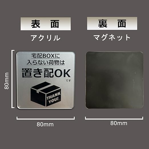 Seagron 宅配ボックスに入らない荷物は置き配OK マグネット 宅配ボックス 宅配BOX プレート 置き配達 不在案内 再配達防止 3.5㎜アクリル製 おしゃれ 8×8㎝ (置き配OK(BOXに入らない時), マグネット) a
