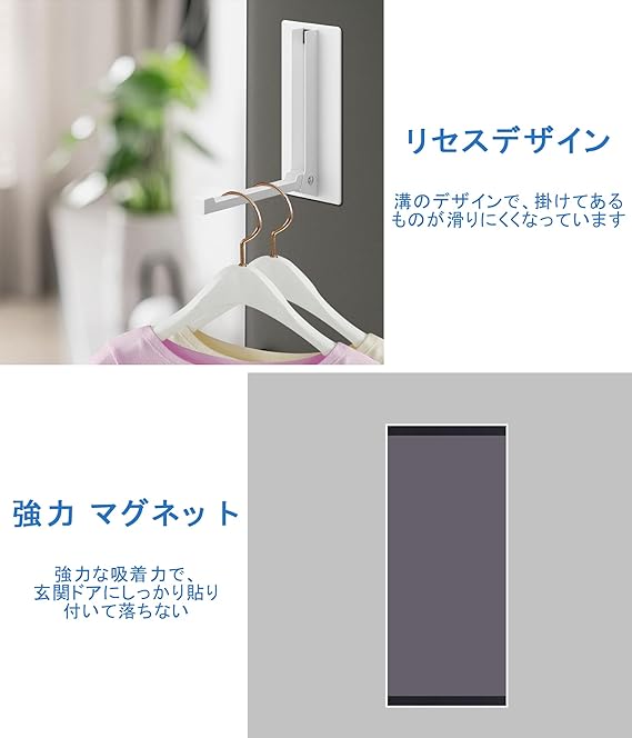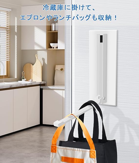 使用例:この折りたたみ式コートラックは、マグネット式の玄関ドアに取り付けて、濡れたマッキントッシュや傘を一時的に収納して乾燥させることができます。 また、冷蔵庫に掛