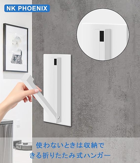 NK Phoenix マグネット 折り畳み ハンガー ドアハンガー 玄関扉 収納 取り付けが簡単 ホワイト 使用時:約W8×D16.5×H18cm 収納時:約W8×D3×H18cm a